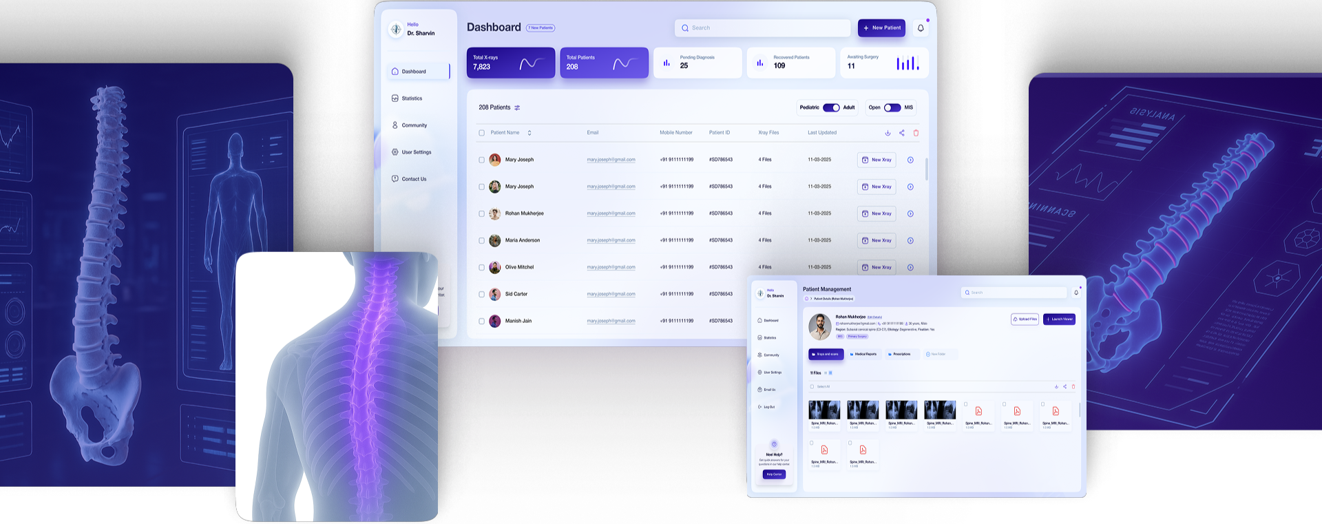 All your patient files and plans are saved securely in the cloud. Review or edit them anytime — whether you're in the OT, clinic, or halfway around the world.